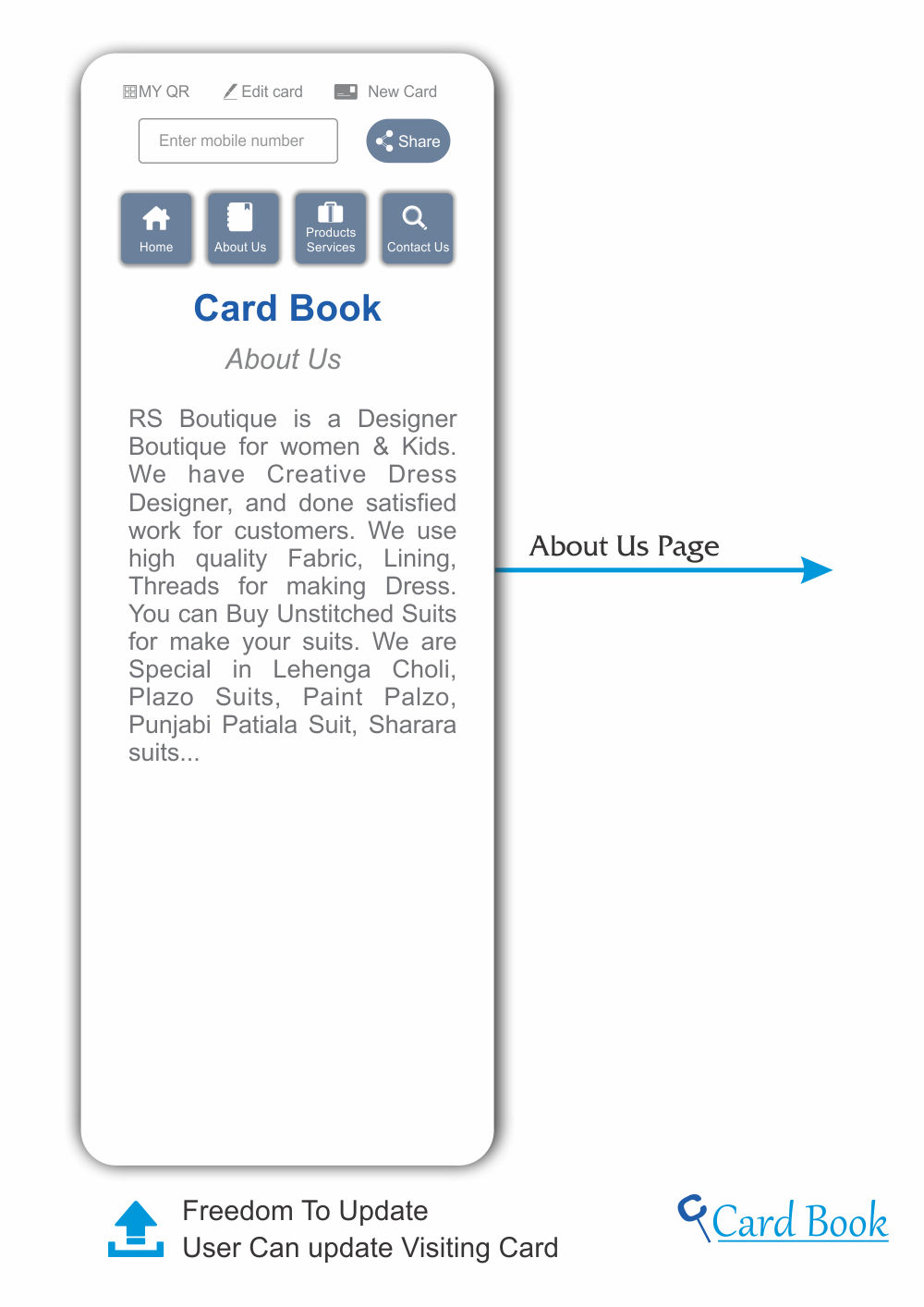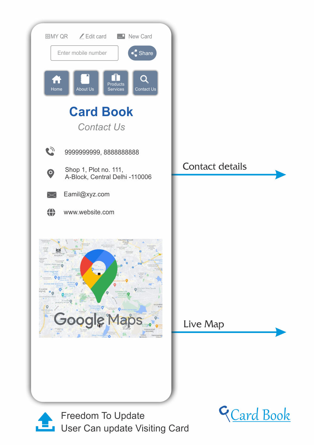 Digital Visiting Card is a Digital formation of your business card. Which allows you to be online your business. You can be on Mobile, tablet, Laptop.